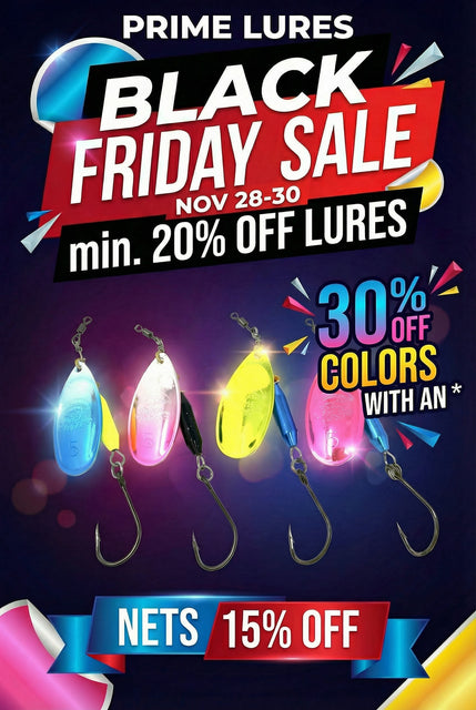 Min. 20% off all lures. 30% off colors with an asterisk (*). Carbon fibre nets are 15% off. Free shipping on orders $100+ in Canada.